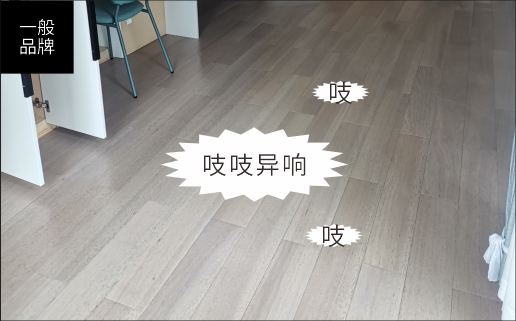 一般品牌受限于资金和技术,没有这方面的静音设计和工艺,忽视消费者 的家居体验,导致地板安装后出现异响等问题。